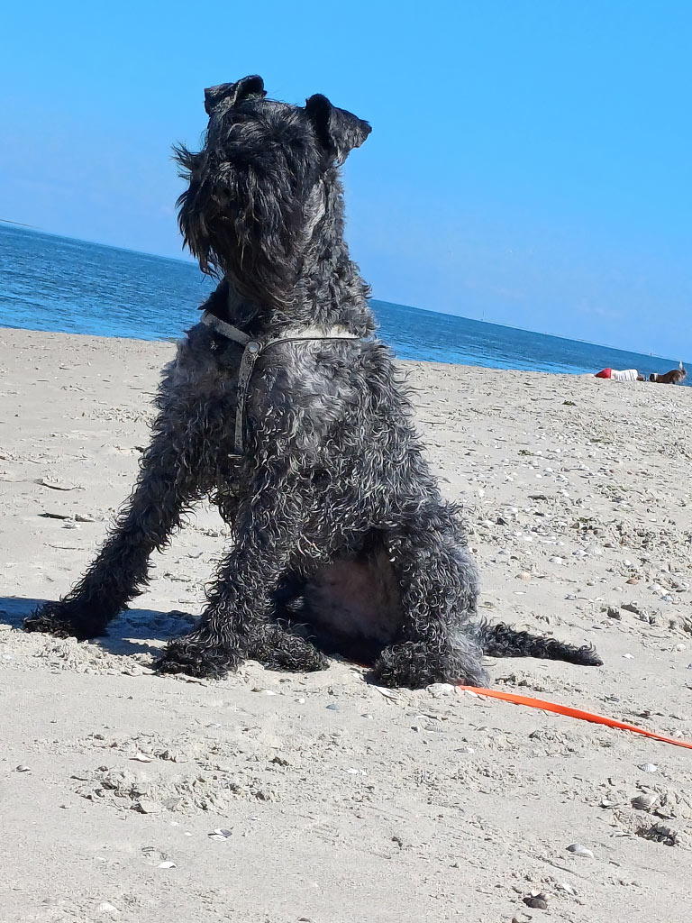 Oscar schwimmt nicht gerne, wurde aber jeden Tag mutiger und ließ sich dann auch von den Wellen nicht mehr beeindrucken.